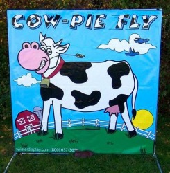 Get ready for some udderly amusing fun with The Cow Pie Fly Carnival Game! This hilarious and engaging game is a perfect addition to any bounce house rental, bringing a dash of farmyard frenzy to your event. Suitable for all ages, participants will have a blast tossing 'cow pies' in this lighthearted, barn-themed challenge. Ideal for school carnivals, community events, or any festive gathering, The Cow Pie Fly is guaranteed to provide laughter and entertainment. Rent it today to add a unique and memorable activity to your carnival-themed fun!