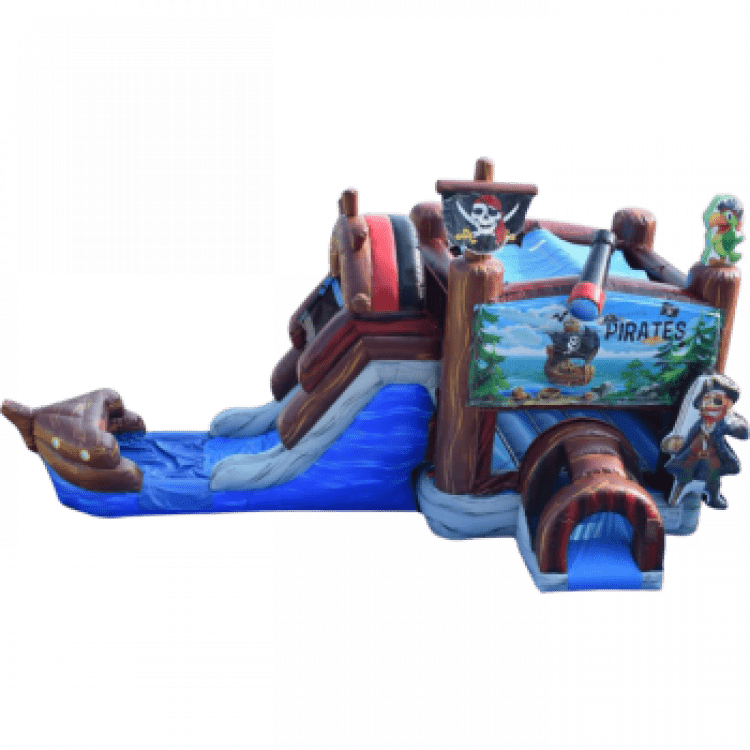AHOY MATEY'S!! Look No Further This is The Perfect Combo For Your LIL Buccaneeer. The Pirate Ship Combo Features a Larrrrrge Bounce Area, BasketBall Hoop & Wet or Dry Slide To Provide Endless Fun. Climb Aboard The Ship's about to Set Sail Next Stop .......BEST PARTY EVER! The Look On The Kids Face Will Be as Priceless as The Buried Treasure.
