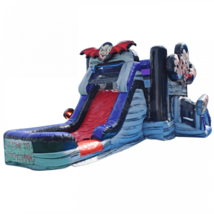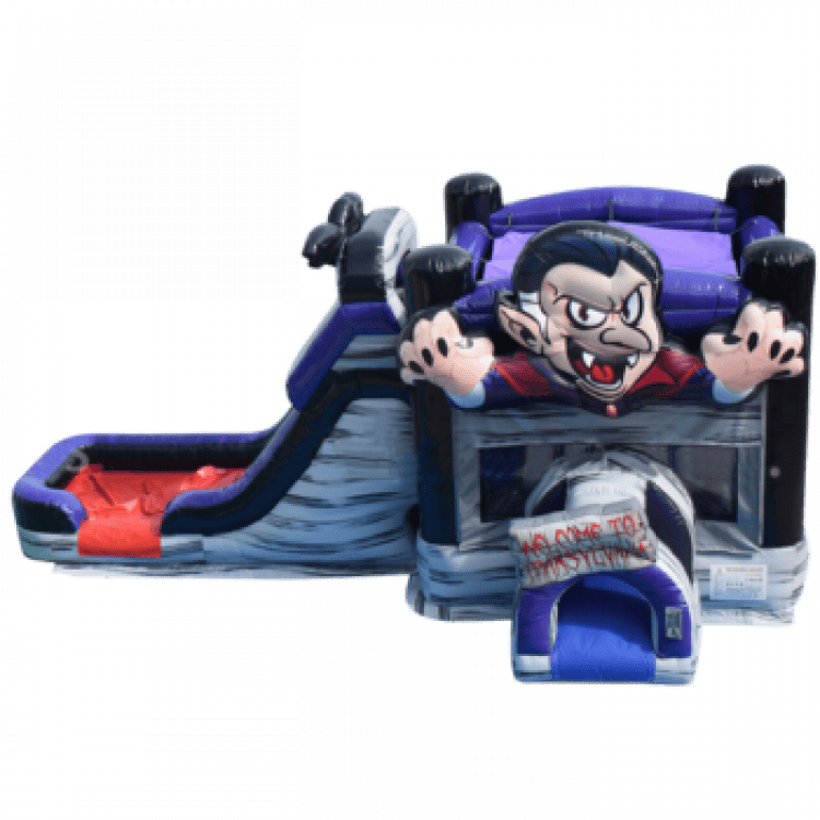 Sink your fangs into some fun with our all new Dracula Bounce House With Slide. This awesome Halloween themed unit will be the talk of the town this year. You little monsters will enjoy Countless hours of fun bouncing and sliding with their guests. Great addition to any party or event if you want your guests to be Mind